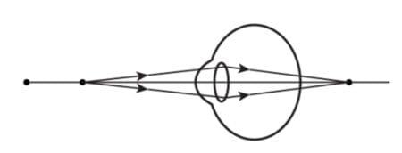 The image shows the ray diagram of a defected eye.