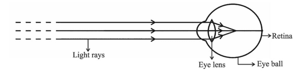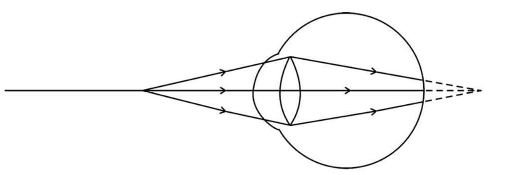 (iii) Draw a well labelled diagram to show the type of corrective lens used for restoring the vision of such an eye.