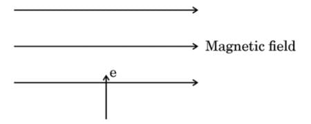 (iii) State Fleming’s left-hand rule. Using this rule, determine the direction of force applied on an electron entering a uniform magnetic field as shown in the figure.