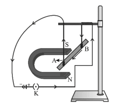 (a) a force is exerted on the current-carrying conductor AB when it is placed in a magnetic field.
