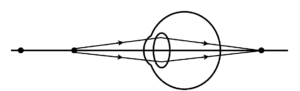 The image shows the ray diagram of a defected eye.